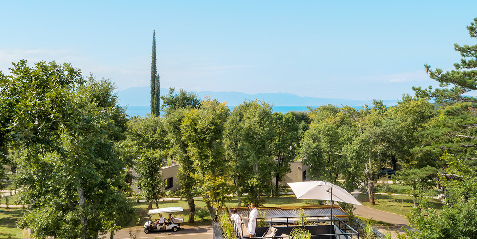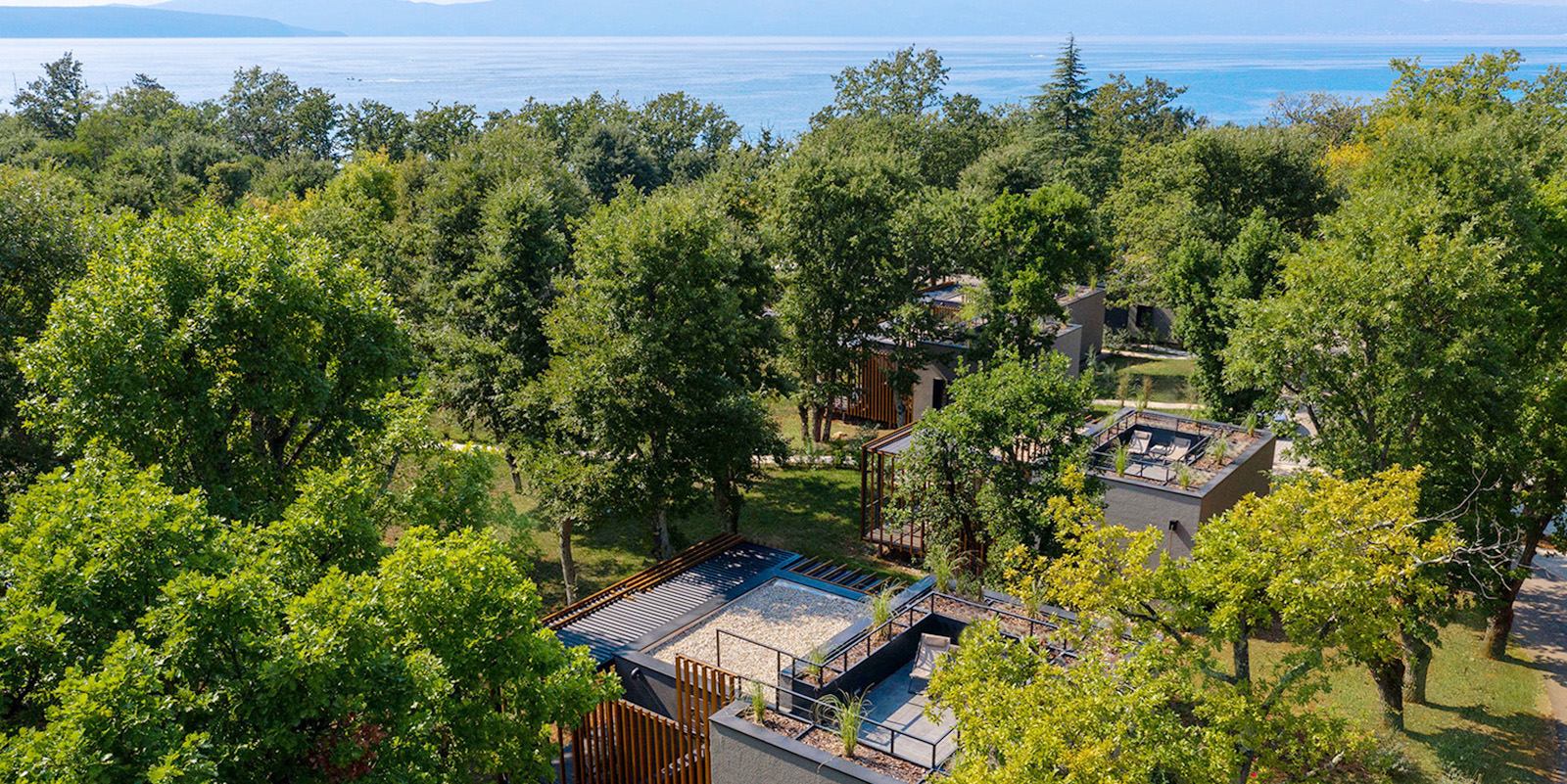 Die Aminess Gaia Green Villas befinden sich in einer idyllischen Lage in Njivice auf der Insel Krk in Kroatien. Die 80 ein- und zweistöckigen Villen sind harmonisch in einem mediterranen Eichenwald verteilt und liegen nur etwa 120 Meter vom Meer und einem gepflegten Kies-/Felsstrand entfernt. Die Umgebung bietet eine perfekte Synergie aus moderner Architektur und unberührter Natur, mit aromatischen Pflanzen, Bäumen und reichhaltiger Tierwelt. Das Zentrum von Njivice ist etwa 1,1 km entfernt und leicht zu Fuß erreichbar. In der Nähe befinden sich verschiedene Restaurants und Bars, darunter das Il Cantuccio, die 7 Seas Restaurant & Bar und die Cabana Bar&More. Die Region um die Villen eignet sich hervorragend für Aktivitäten wie Wandern, Radfahren und Wassersport. Die Insel Krk bietet zahlreiche Sehenswürdigkeiten, darunter die historische Stadt Krk, die etwa 20 km entfernt liegt. Der Flughafen Rijeka ist nur 5,6 km von den Villen entfernt, was sie zu einem gut erreichbaren Urlaubsziel macht.