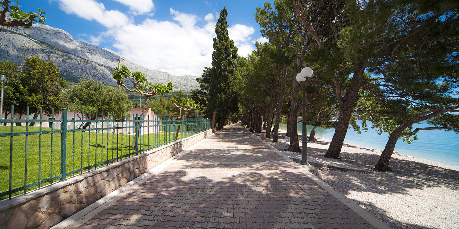 Der Strand liegt direkt vor dem Hotel, das Zentrum von Tučepi erreicht man in zehn Minuten zu Fuß. Ausflüge nach Split, Dubrovnik oder zum Nationalpark Krka starten direkt vom Hotel aus. Auch Wassersport wie Parasailing, Kajak oder Tauchen ist über lokale Anbieter möglich.