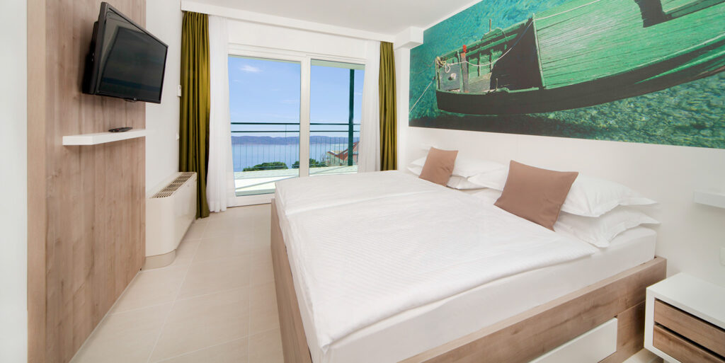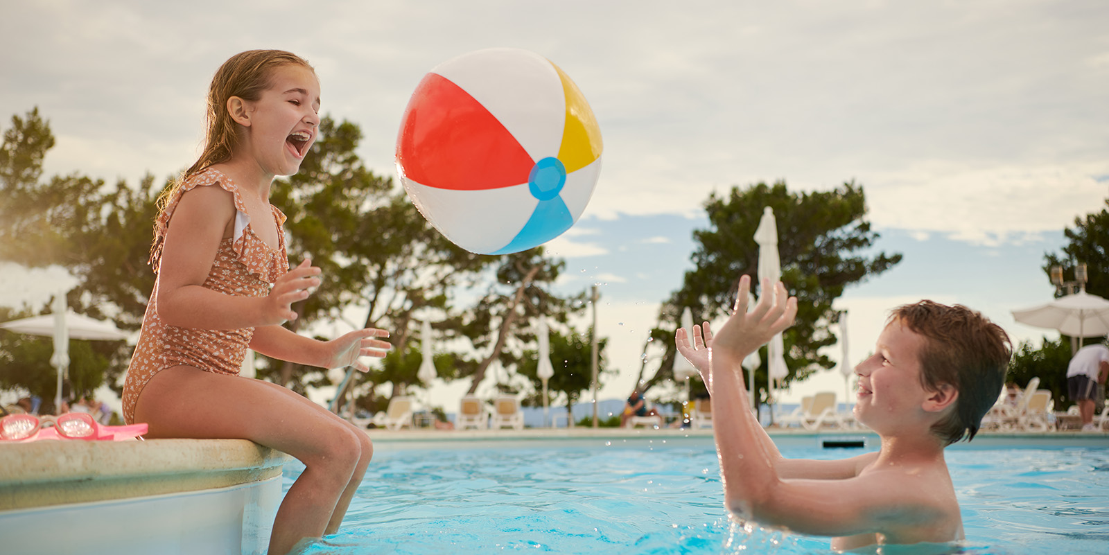 Ruhe findet man am besten auf der Sonnenterrasse mit Blick auf das Meer oder beim Bad im großen Pool. Wer mehr Bewegung möchte, nutzt das Sportzentrum Slatina direkt neben dem Hotel – mit kostenfreier Nutzung von Tennis, Tischtennis und Boccia im Rahmen des Animationsprogramms.