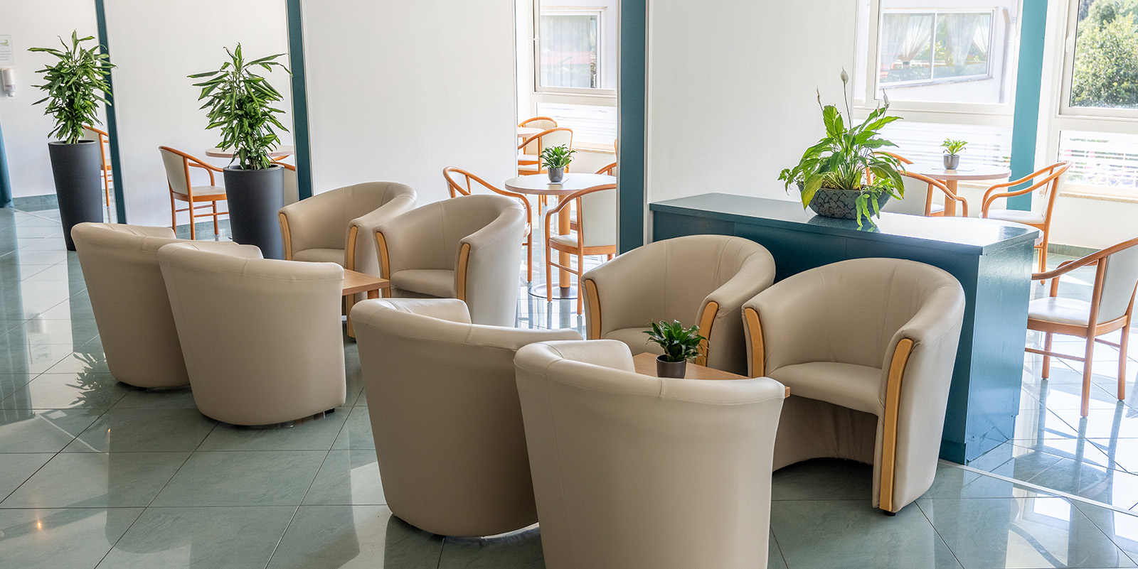 Das Hotel verfügt über helle Gemeinschaftsbereiche, ein Buffetrestaurant mit Terrasse, eine Aperitifbar und eine große Poollandschaft mit Sonnenliegen und Rutsche. Gäste können darüber hinaus weitere Einrichtungen des Maslinica Resorts nutzen: Sportplätze, Fitnesscenter, Fahrradverleih, Kinderbereiche sowie den gepflegten Strand mit Blauer Flagge. WLAN und Parkplätze stehen kostenfrei zur Verfügung.