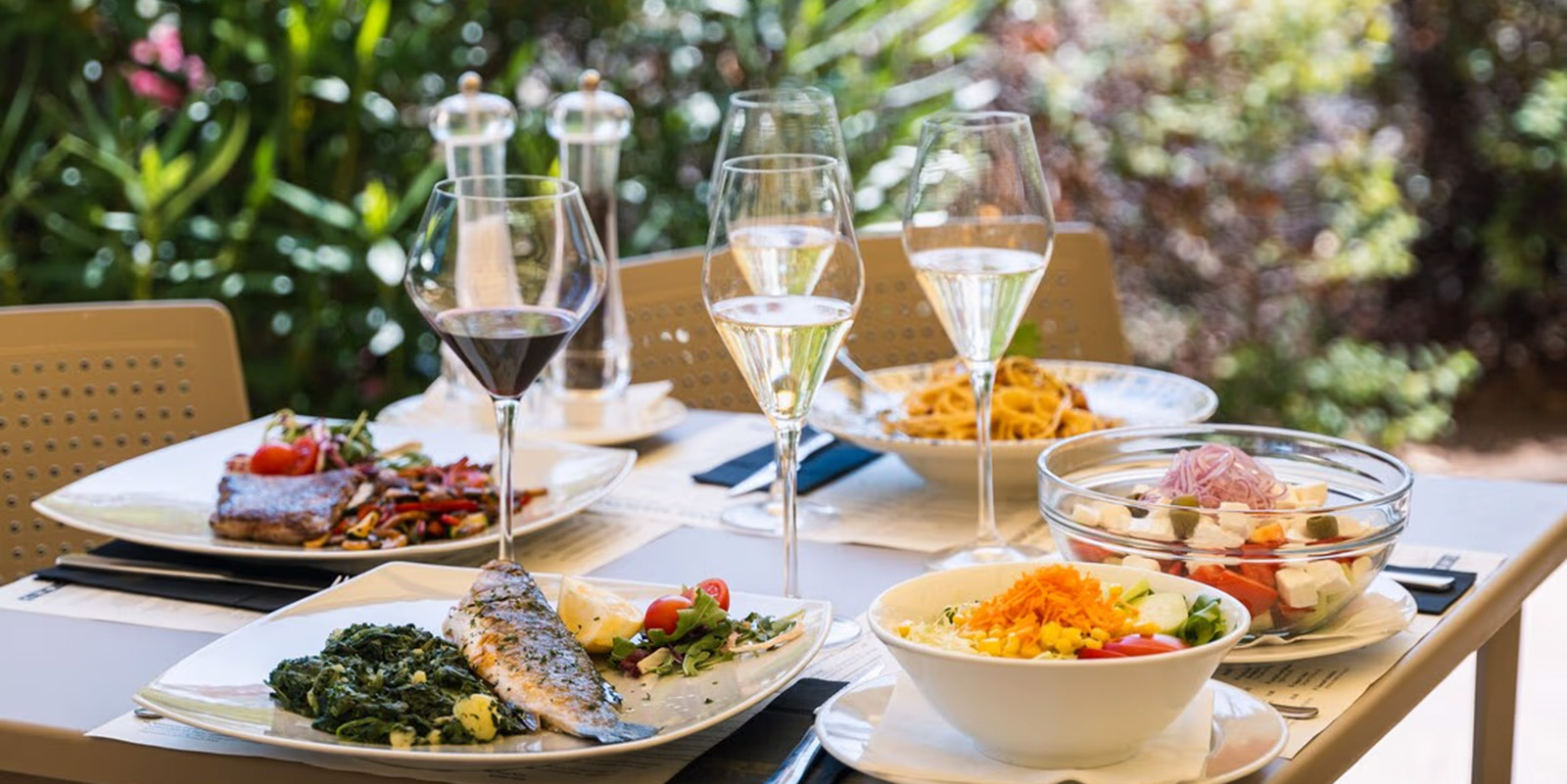 Gäste erwartet ein umfangreiches All-Inclusive-Angebot mit Frühstück, Mittagessen, Abendbuffet sowie Snacks, Getränken und Eis im Tagesverlauf. Während der Sommersaison (25. Mai bis 13. September) sind zum Abendessen Getränke wie Wasser, Softdrinks, Bier und Wein unbegrenzt inklusive. Ergänzt wird das kulinarische Angebot durch die Aperitifbar, eine Pizzeria, eine Gelateria, den Healthy Corner sowie verschiedene Snackbars im Resort.