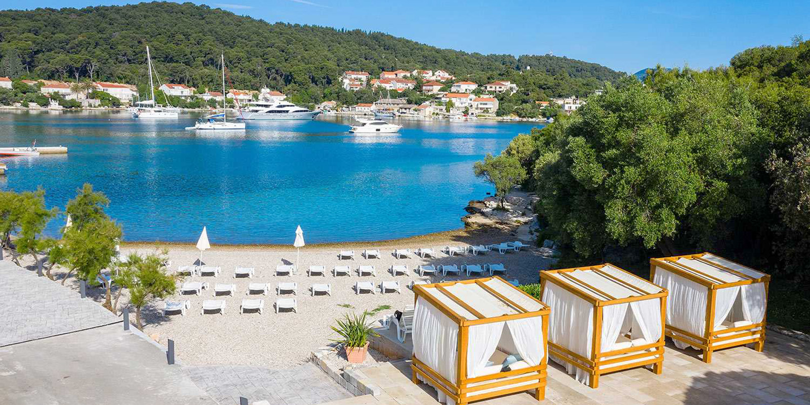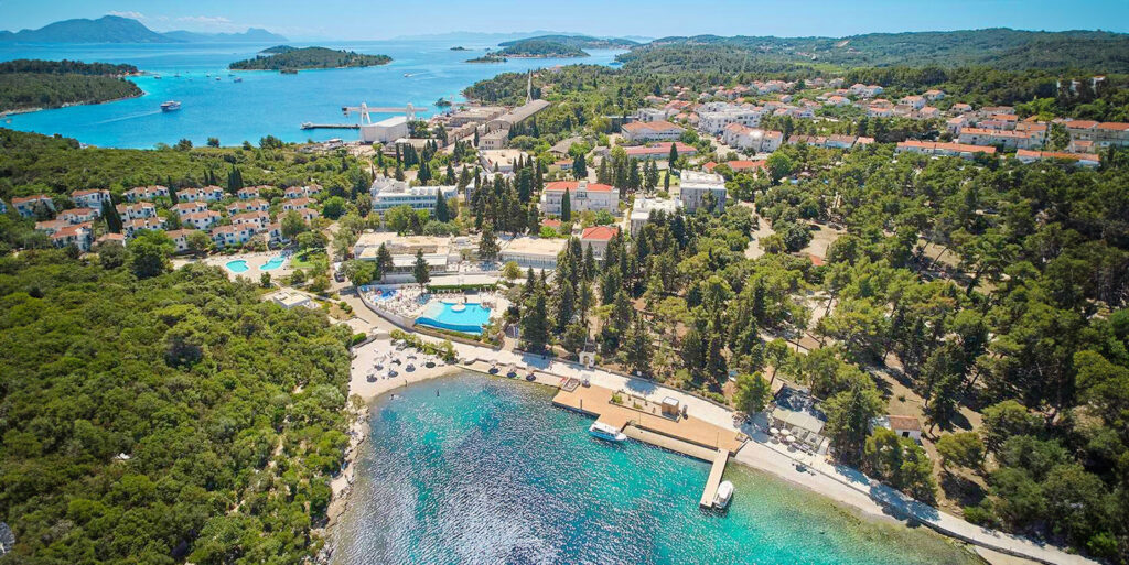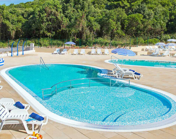 Der Port9 Campsite by Aminess liegt in einer idyllischen Umgebung auf der Insel Korčula in Kroatien, etwa 3 km von der Stadt Korčula entfernt. Der Campingplatz befindet sich direkt am Meer und ist von Pinien und Olivenbäumen umgeben. Ein schöner Strand mit sandigen, kiesigen und felsigen Bereichen bietet ideale Bedingungen für Entspannung und Wassersport. Die Umgebung ist ideal für Familienurlaube, mit zahlreichen Freizeitaktivitäten wie Radfahren, Wandern und Bootsausflüge. In der Nähe gibt es mehrere Restaurants und Bars, darunter die traditionelle Konoba Lanterna, die lokale Spezialitäten anbietet. Der Campingplatz bietet auch eine Grillzone und einen Spielplatz für Kinder. Die Insel Korčula ist ein perfekter Ausgangspunkt für Ausflüge zu den nahegelegenen Inseln und bietet eine Vielzahl von kulturellen Sehenswürdigkeiten. Die malerische Altstadt von Korčula ist in etwa 30-40 Gehminuten erreichbar.