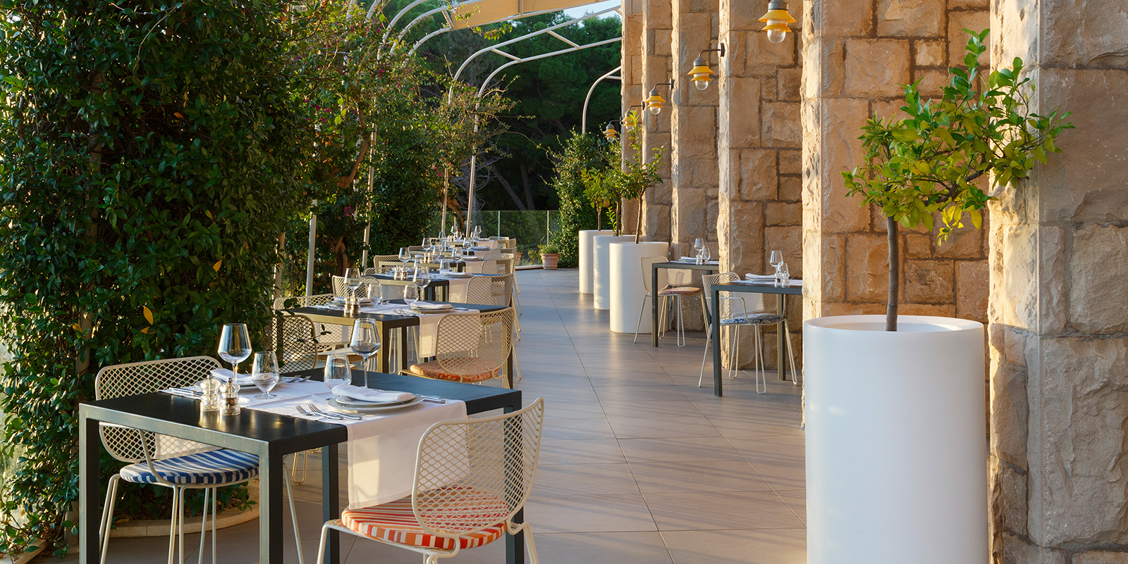 Der kleine, aber feine Spa-Bereich bietet eine finnische Sauna, Dampfbad sowie Massage- und Kosmetikangebote (gegen Aufpreis). Wer lieber draußen aktiv ist, nutzt das tägliche Yoga, Aqua Gym oder die morgendliche Gymnastik auf der Terrasse mit Meerblick.